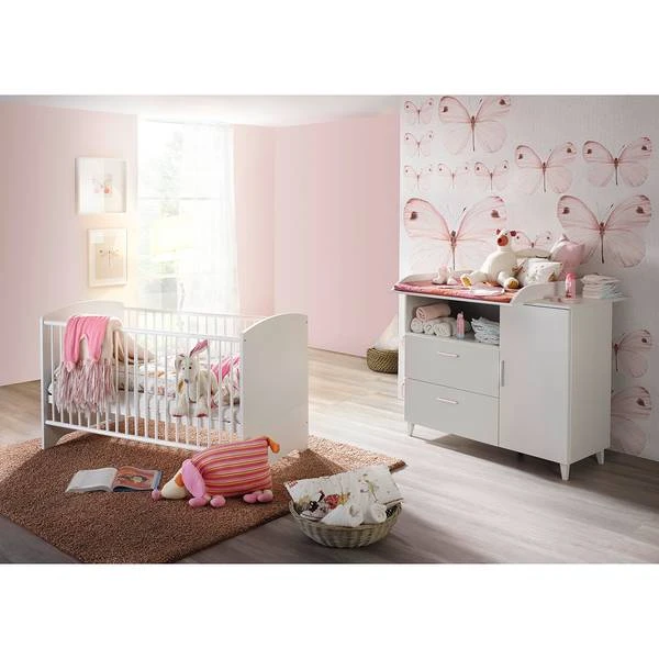- Levering: bed met spijlen + verschoningscommode