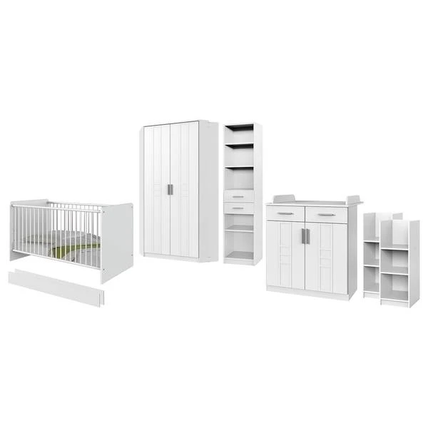 - Levering: hoekkast, ledikant, 2 bedzijkanten, verschoningscommode, 2 lage kastjes, open kast