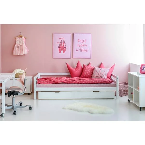 - Levering: 1 x Hoppekids Basic junior bed 90x200cm met lattenbodem en 3-zijdige uitvalbeveiliging; 1 x extra valbescherming voor bedvoorkant, 1 x schuimmatras 90x200cm; 1 x katoenen hoes voor matras 90x200cm, 1 x logeerbed 70x190cm; 1 x schuimmatras voor logeerbed 70x190cm; 1x katoenen hoes voor matras 70x190cm