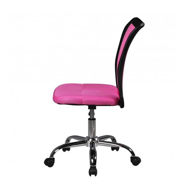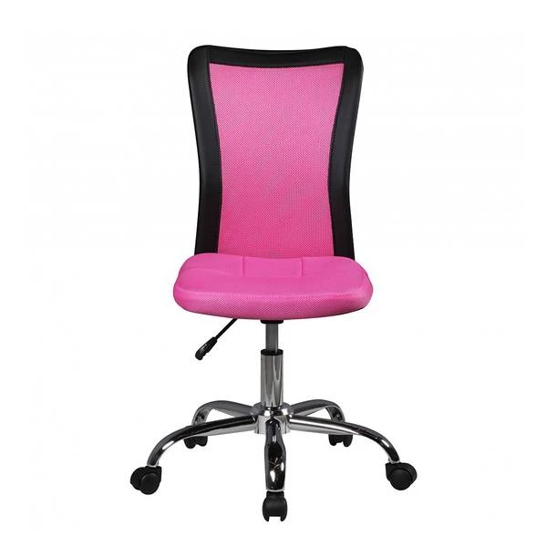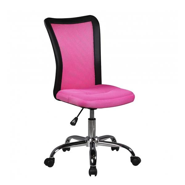 - Zitoppervlak en rugleuning: roze; Rand rugleuning: zwart, Kruisvoet zilver, Wielen zwart