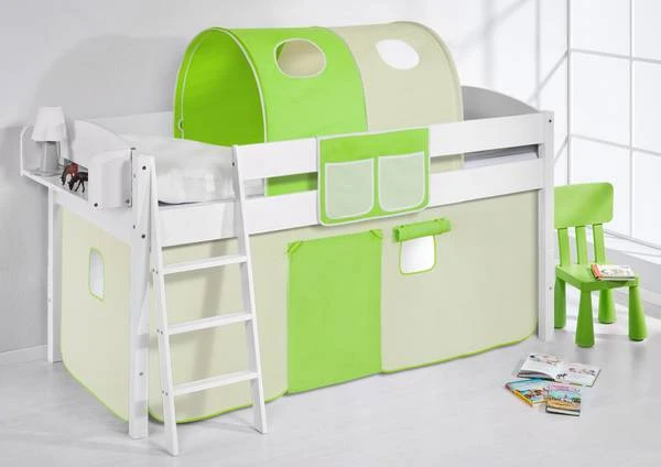 - Lattenbodem, matras, tunnel, opbergzak, boekenplank en decoratie zijn niet inbegrepen