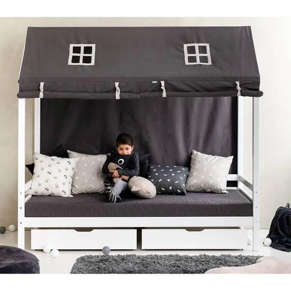 - Overige informatie: # Hoppekids huisbed is aanpasbaar. Dakelement verwijderbaar: de slaapbank kan worden omgebouwd met modules, bijv. tot een stapelbed of een hoogslaper
