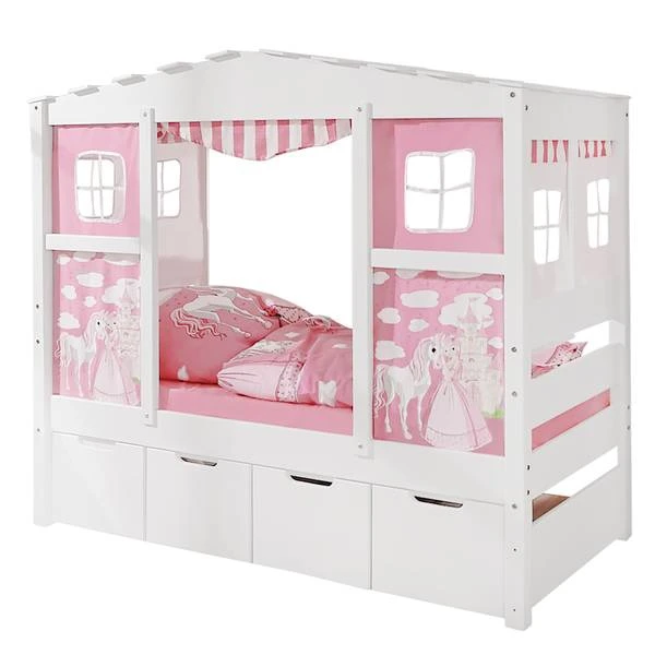 - Levering: Huisbed incl. gordijn, matras, lattenbodem, 4-delige bedlades (zonder kussen en decoratie)
