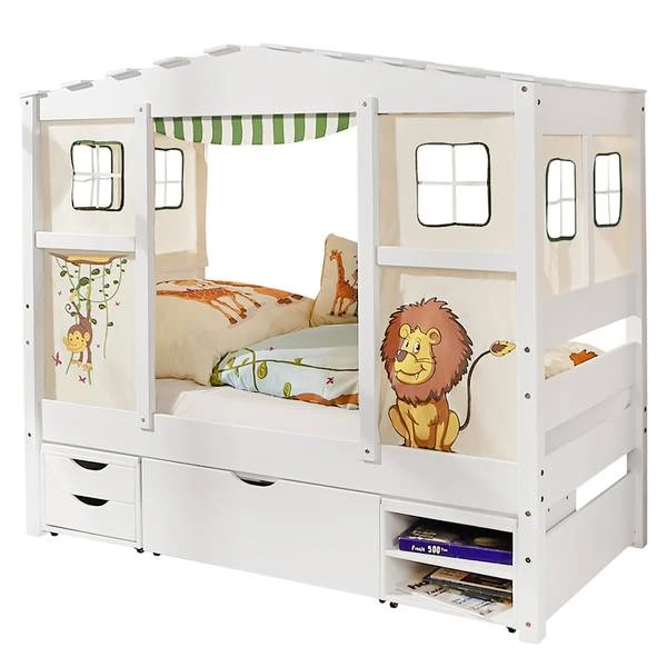 - Levering: Huisbed incl. gordijn, matras, lattenbodem, kastje/bedlade-element (zonder kussen en decoratie)