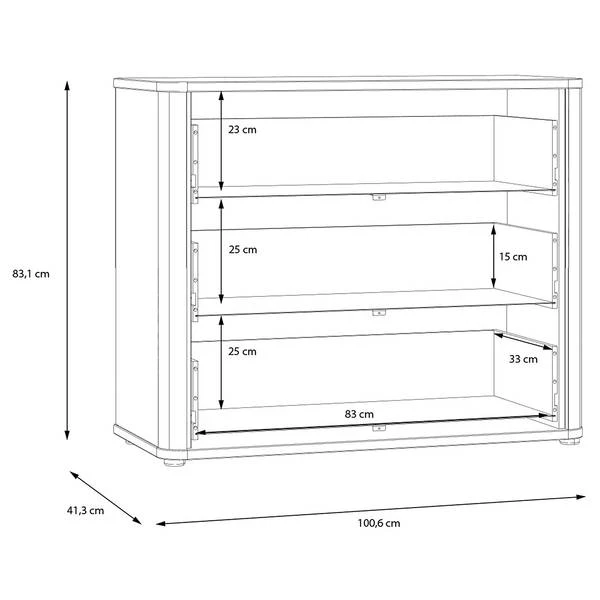 - Binnenmaat lades: elk 83,8 x 15,6 x 33,8 cm BxHxD