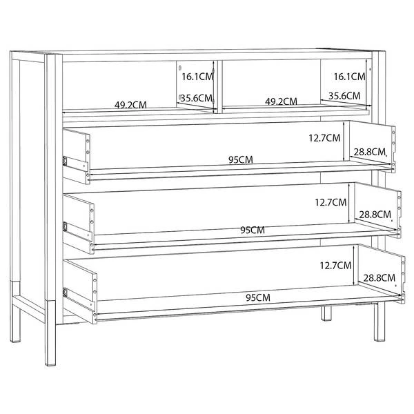 - Binnenmaat lades: elk 95 x 12,6 x 28,8 cm BxHxD