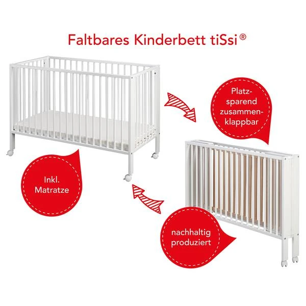- Levering: Reisbedje, matras, 2 uitneembare spijlen, wieltjes en bevestigingsset