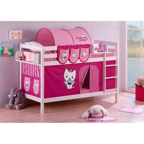 - Levering: Stapelbed JELLE wit 90×200 cm incl. gordijn (set van 2) en lattenbodem
