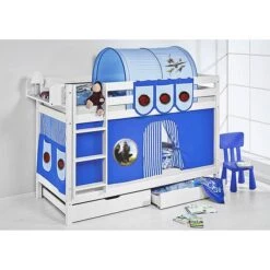 - Levering: Stapelbed JELLE wit 90×200 cm incl. gordijn (set van 2) en lattenbodem