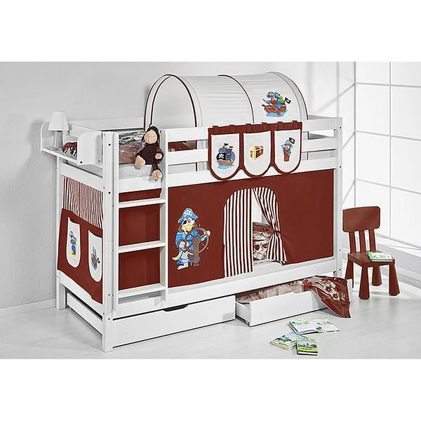 - Levering: Stapelbed JELLE wit 90×200 cm incl. gordijn (set van 2) en lattenbodem