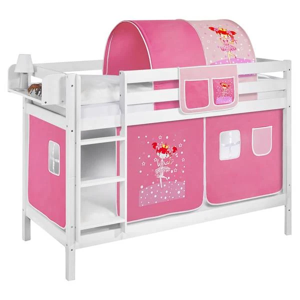 - Levering: Stapelbed JELLE wit 90×190 cm incl. gordijn (set van 2) en lattenbodem