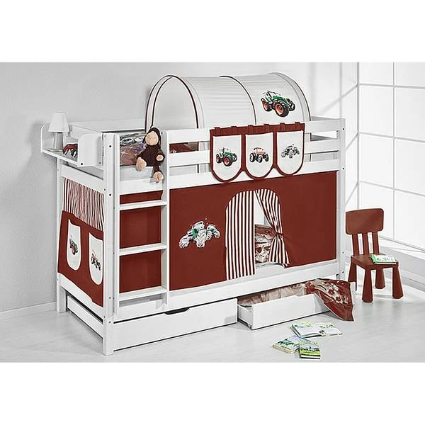 - Levering: Stapelbed JELLE wit 90×200 cm incl. gordijn (set van 2) en lattenbodem