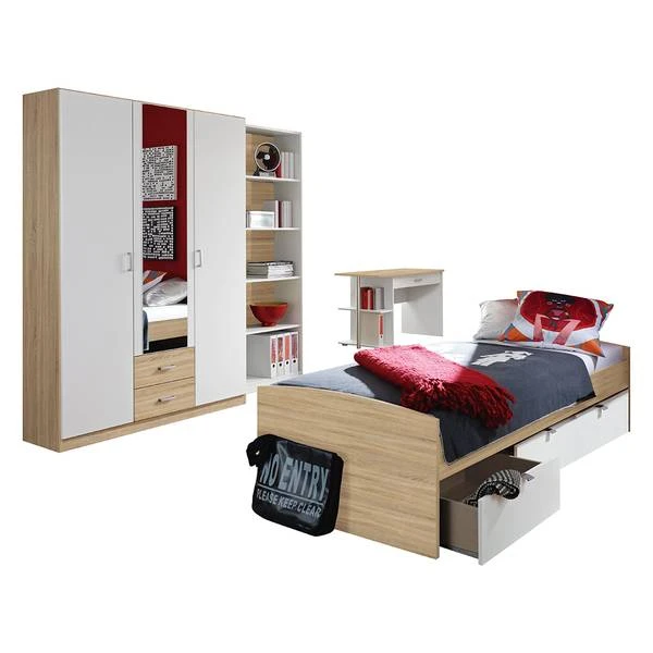 - Levering: 4-delige kinderkamercombinatie met bedlades, zonder decoratie, textiel, matras en lattenbodem